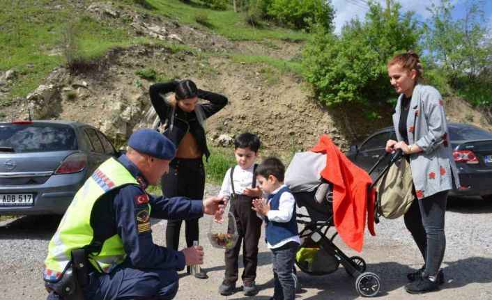 Şırnak’ın Uludere ilçesine bağlı İnceler köyündeki askeri noktada rutin kontrol yapan jandarma, ellerinde kolonya ve şekerle vatandaşların bayramını kutladı. Durdurulan araçlarda vatandaşların bayramını kutlayan jandarma personelleri, sürücüleri kemer takmaları konusunda uyardı.