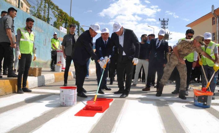 İçişleri Bakanlığının ’Yaya önceliği kırmızı çizgimizdir’ uygulaması bünyesinde Şırnak Nazmiye Demirel Kız Meslek Lisesi önünde yapılan etkinlikte, emniyet ve jandarma ekipleri ile öğrenciler yaya geçidini kırmızıya boyadı.