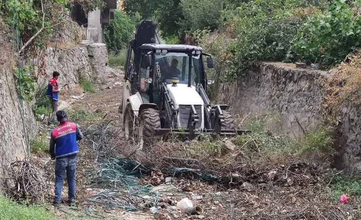 Şırnak’ın Uludere İlçe Belediyesi ekipleri, kavurucu sıcaklara rağmen dere yataklarında biriken molozları temizlemeye devam ediyor.