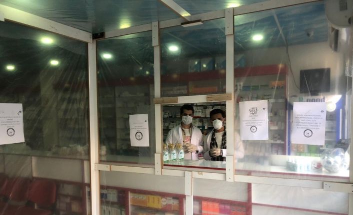 Uludere’deki eczaneden korona virüse karşı naylonlu önlem