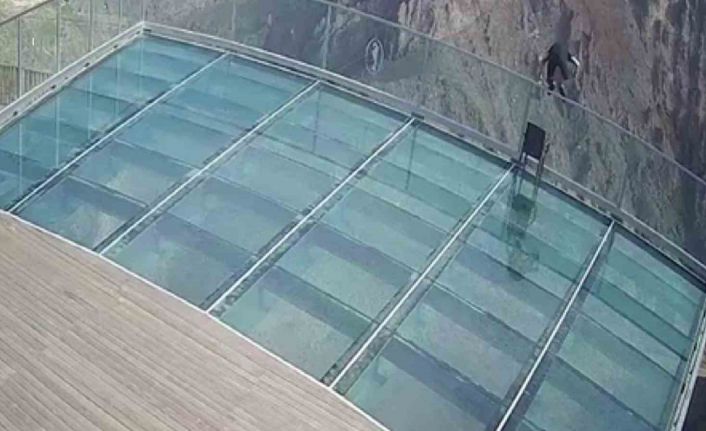 SİVAS’IN DİVRİĞİ İLÇESİNDE 243 METRE YÜKSEKLİĞİYLE ANADOLU’NUN EN YÜKSEĞİ OLAN CAM SEYİR TERASINDAN AŞAĞI ATLAYAN ŞAHSIN O ANLARI GÜVENLİK KAMERASINA YANSIDI