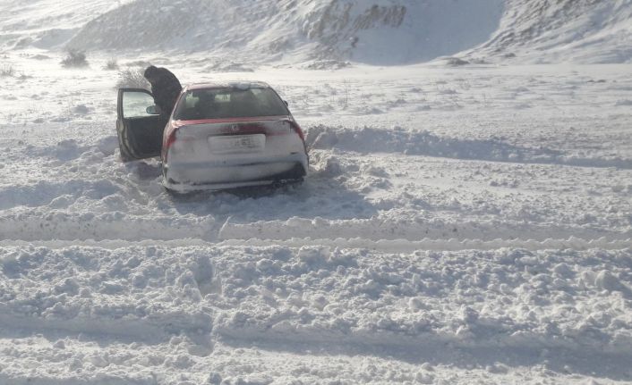 Sivas’ın Gürün ilçesinde tipi nedeniyle yolda mahsur kalan araçların yardımına polis ve karayolları ekipleri koştu.