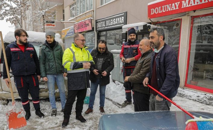 Sivas Belediye Başkanı Hilmi Bilgin kentte kar temizleme çalışması yapan ekipleri ziyaret ederek dükkan ve evlerinin önünü temizleyen vatandaşlara teşekkür etti.