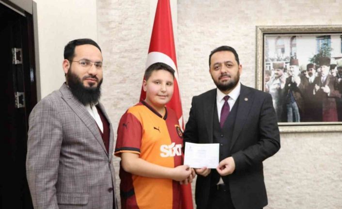 İl Müftüsü Hasan Limon, Enes’i tebrik ederek hediye takdim etti.