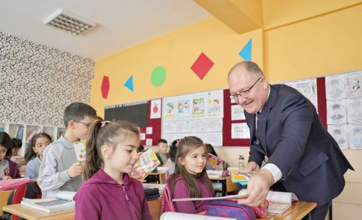 Çocuklara kitap hediye eden Başkan Bilgin; "Kitap okumak yeni dünyalara yelken açmak demektir. Okuyarak, araştırarak, sorgulayıp öğrenerek kendinizi geliştirmenizi tavsiye ediyorum" dedi.