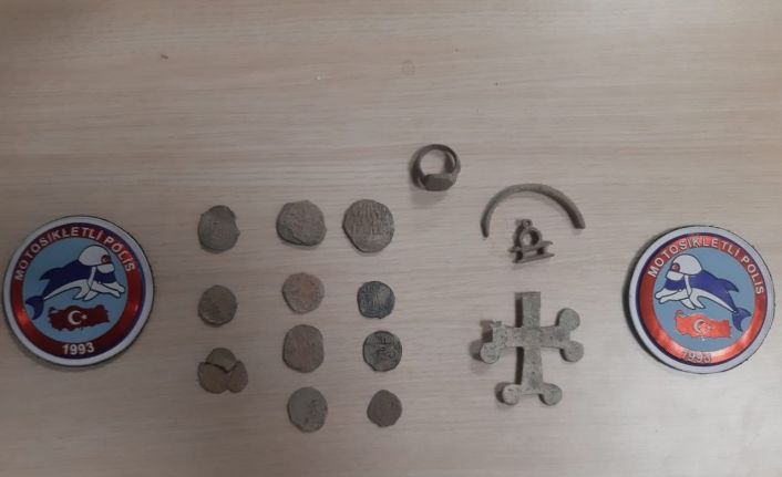 Sivas’ta durdurulan araçta ki üç kişinin yapılan üst aramalarında Bizans dönemine ait antikalar ele geçirildi.