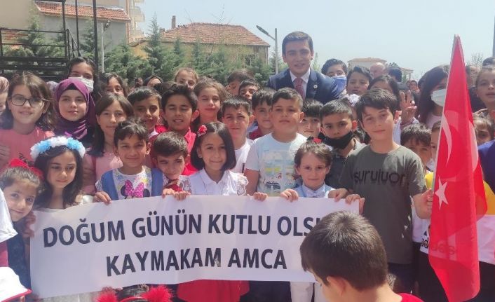 Yozgat’ın Çekerek ilçesinde öğrenciler 23 Nisan kutlamaları sırasında doğum günü olduğunu öğrendikleri ilçe kaymakamı Hayrettin Buğra Güzel’e doğum günü sürprizi yaptı.