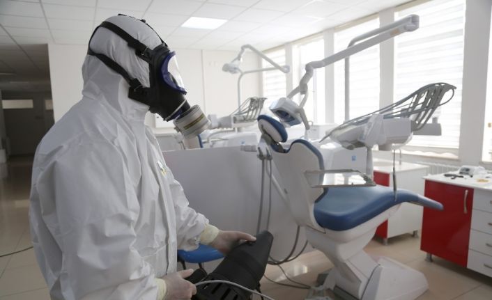 Sivas Cumhuriyet Üniversitesi’nde yer alan binaların yeni tip koronavirüse karşı dezenfekte edilmesi çalışmaları kapsamında Diş Hekimliği Fakültesi ve Sivas Cumhuriyet Üniversitesi Sağlık Hizmetleri Uygulama ve Araştırma Hastanesi’nde dezenfeksiyon ve rutin temizlik işlemleri gerçekleştiriliyor