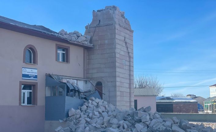 Sivas’ta depremde hasar gören Kangal Zafer camisinin minaresi kontrollü olarak yıkıldı.