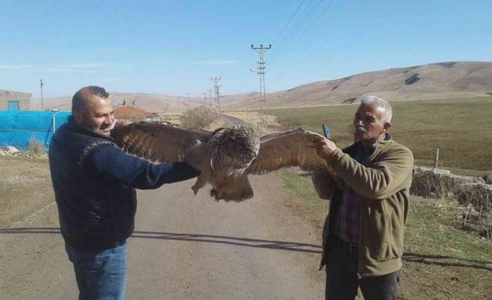 Sivas’ta avlandığı sırada elektrik tellerine takılan dev baykuş akıma kapılarak telef oldu.