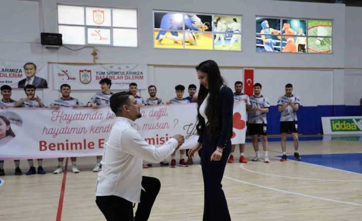 Türkiye Hentbol Erkekler 1. Ligi’nde oynanan Sivas Gençlik Spor Kulübü-Giresunspor karşılaşması unutulmaz bir sürprize sahne olurken, Sivas Gençlik Spor Kulübü’nün yardımcı antrenörü Kürşat Eryıldız, basketbol antrenörü Yaren Kuzucu’ya evlilik teklifi yaptı.