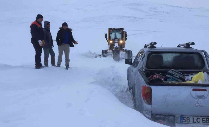 Sivas’ta dün başlayan yoğun kar yağışı etkisini sürdürmeye devam ediyor. Gürünün Koyunlu köyüne giderken kara saplanan 2 araç ve 10 kişi kapanan yolda ilerlemekte güçlük çekti. Durumun bildirilmesi üzerine vatandaşların yardımına koşan İlçe Özel İdare Ekipleri yol açma çalışması gerçekleştirdi. Yolun açılmasının ardından vatandaşlar bulundukları yerden kurtarıldı.