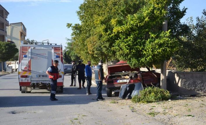 Sivas’ta kaza yapan Renault marka otomobil, karton kutu gibi buruştu.