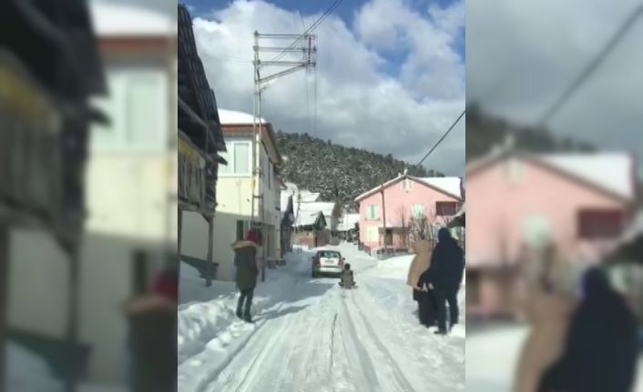 Sivas’ta geçtiğimiz günlerde etkili olan kar yağışı en çok çocukları sevindirdi. Sivas’ın Koyulhisar ilçesinde Salih ve Ahmet Alkan adlı iki kardeş karın yağmasını fırsata çevirdi. Ailesi ile birlikte ilçede bulunan Eğriçimen yaylasına giden iki kardeş, otomobil arakasına bağladıkları kızak ile karda kaymanın keyfini doyasıya yaşadı. O anlar ise cep telefonu kamerasına yansıdı.Kızağı otomobilin arkasına bağladılar, doyasıya eğlendiler