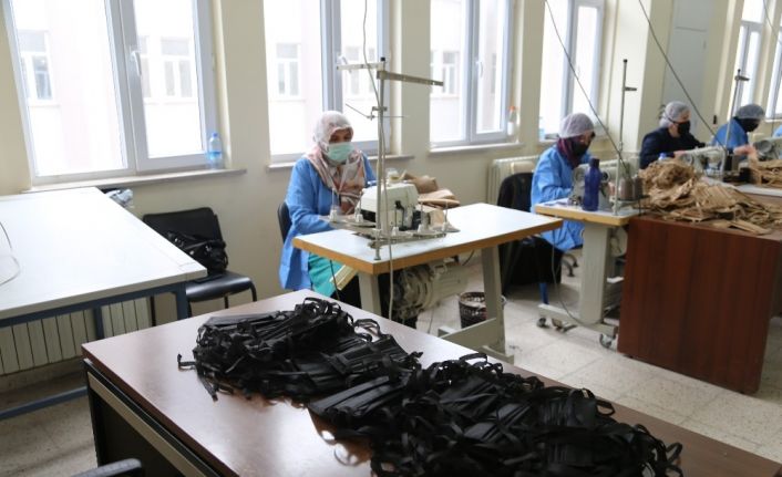 SİVAS CUMHURİYET ÜNİVERSİTESİ SAĞLIK HİZMETLERİ UYGULAMA VE ARAŞTIRMA HASTANESİ EĞİTİME ARA VERİLMESİYLE BOŞTA KALAN MAKİNALARI KULLANARAK MASKE ÜRETİYOR.