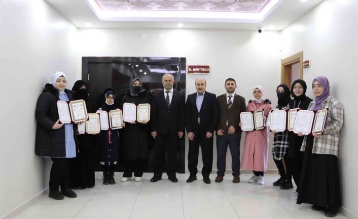 İl Müftülüğüne bağlı Abdulvahhabi Gazi Yatılı Kur’an kurslarında öğrenim gören 7 öğrenci ve Sivas Uluslararası Şehit M. Murat Ertekin Anadolu İmam Hatip Lisesi’nde öğrenim gören 2 öğrenci hafızlık belgelerini İl Müftüsü Remzi Pehlivan’dan aldı.