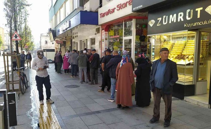 50 kilometre uzaklıkta olan köyden gelen Abdurrahman ışık, “Ben Yakupoğlan köyünden geldim. Daha yeni geldim yarım saat olmadı. Kuyruk uzun 2 saat kadar beklerim belki. 50 kilometre yoldan geldim. 7 bin lira promosyon alacağım sanırım” şeklinde konuştu.