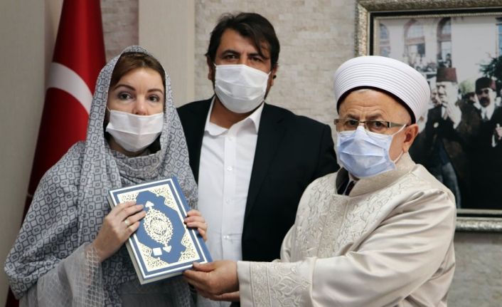 Daha sonra Müftü Akkuş, “İhtida Belgesi” ile birlikte Nur Bahar’a Kur’an-ı Kerim ve İslam İlmihali hediye etti.