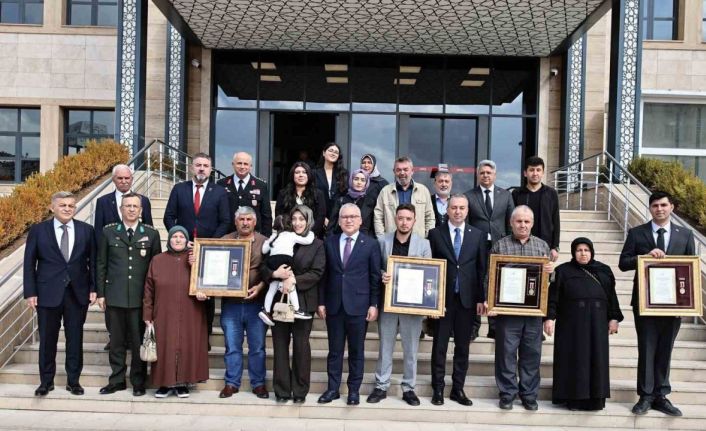 Törende, Malul Gazi Tnk. Uzm. Çvş. Veyis Başel, Şehit P. Uzm. Çvş. Özkan Lale, Malul P. Uzm. Çvş. Azmi Şahin ve Şehit P. Uzm. Çvş. Ömer Yıldırım’ın madalya ve beratları, Vali Şimşek tarafından sunuldu.