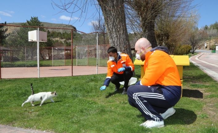Sivas Belediyesi, yeni tip korona virüs (Kovid-19) tedbirleri nedeniyle sokağa çıkamayan vatandaşların besleyemediği sokak hayvanları için kentin farklı noktalarına mama ve yem bıraktı.