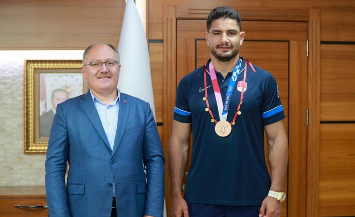 Geçtiğimiz günlerde düzenlenen 2020 Tokyo Olimpiyat Oyunları’nda, erkekler serbest stil 125 kiloda rakibi Moğol Lkhagvagerel Munkhtur’u yenerek bronz madalya kazanan milli güreşçi Taha Akgül’ü, Sivas Belediye Başkanı Hilmi Bilgin makamında ağırlayarak şampiyon güreşçiye çeşitli hediyeler takdim etti.