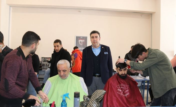 Sivas’ta gönüllü berber ve kuaförler, yurtlara yerleştirilen depremzedelerin saç ve sakal bakımını yaptı.