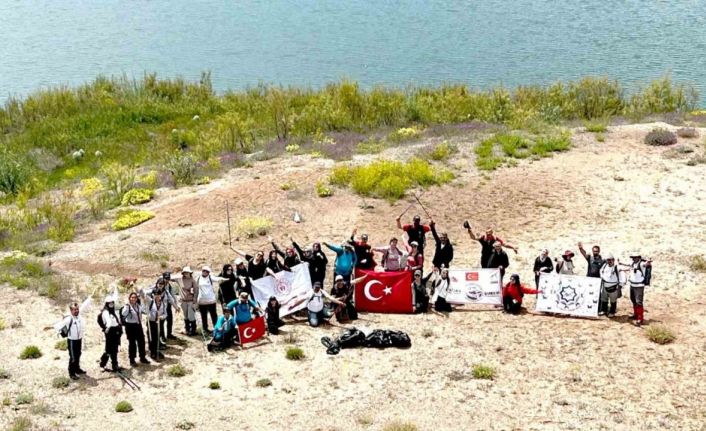 Eğitim çalışanları, su ve su kaynaklarının önemine dikkat çekmek ve farkındalık oluşturmak için gerçekleştirdikleri doğa yürüyüşü programı kapsamında izcilerle birlikte baraj havzasında çevre temizliği de yaptı.