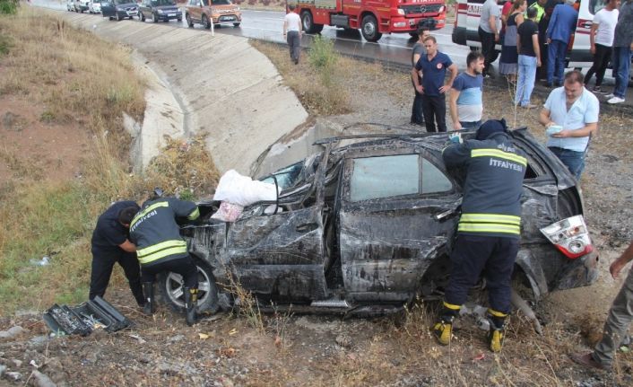 Sivas’ta yağmurun etkisiyle kayganlaşan yolda takla atan aracın şarampole devrilmesi sonucu meydana gelen trafik kazasında 4 kişi yaralandı.