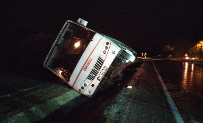 Yoldan çıkan yarım otobüsteki sürücü ve bir yolcu yaralandı.