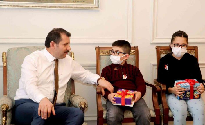 Sivas Valisi Salih Ayhan, Şems-i Sivasî İl Halk Kütüphanesi’nde en çok kitap okuyan öğrencileri aileleriyle birlikte makamında kabul etti.
