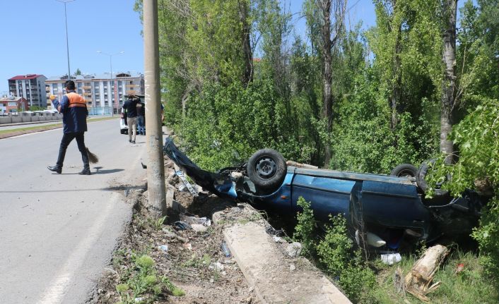 Virajı alamayan otomobil ters döndü: 2 yaralı