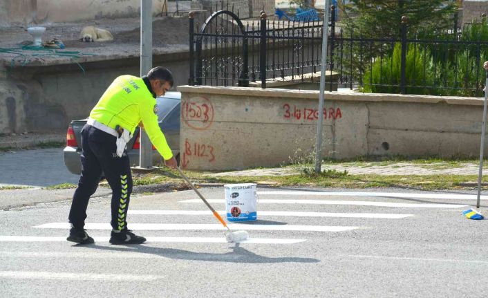 Gemerek İlçesinde eskiyen yaya geçidi işaretlerini yenilemek için Gemerek Emniyet Müdürlüğü Trafik Tescil ve Denetleme Büro Amirliğinde görevli polis memurları ellerine fırçaları alarak Devlet Bahçesi Caddesi üzerinde bulunan yaya geçidi işaretlerini boyadı. Okullar bölgesine yakın olan yaya geçidi renlerinin tekrar beyazlaması velilerde ve öğrencilerinde sevinçle karşılandı.