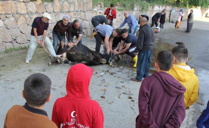Sivas’ta bayram namazının kılınmasının hemen ardından vatandaşlar, kurban kesim yerlerine akın etti. Belediyenin belirlediği kesim yerlerinde sabahın ilk saatlerinden itibaren hareketlilik yaşandı. Hayvanlarını kesim yerlerine getirenlerin bir kısmı yere yatırabilmek için büyük mücadele verdi. Hayvanlar traktör, kepçe, dozer ve forklift yardımı ile ayaklarından kaldırılarak kurban edildi. Vatandaşların mutluluğu ve heyecanı ise yüzlerine yansıdı.