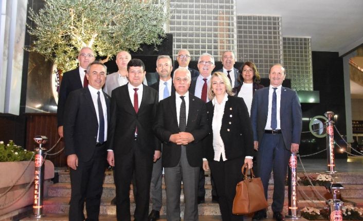 Rozet Takma ve Mahalle Temsilcilerine Sertifika Töreni için Aydın’a gelen İYİ Parti Teşkilat Başkanı Koray Aydın ile eşi Gönül Aydın, Teşkilat Başkan Yardımcısı Mehmet Aslan, İYİ Parti Aydın İl Başkanı Cemal Sarı, Kadın Kolları İl Başkanı Semra Yücel, Teşkilattan Sorumlu İl Başkan Yardımcısı Yaşar Çelebi Kuşadası İlçe Başkanı Hayati Atlı ve İlçe Başkanı Durmuş Kural eşliğinde, Nazilli Belediye Başkanı Kürşat Engin Özcan’ı makamında ziyaret etti.
