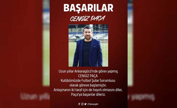 Nesine 3. Lig 1. Grup ekiplerinden 23 Elazığ FK, Futbol Şube Sorumluluğu’na Cengiz Paça’nın getirildiğini duyurdu. Kulüpten yapılan açıklamada, “Uzun yıllar Ankaragücü’nde görev yapmış Cengiz Paça kulübümüzde Futbol Şube Sorumlusu olarak göreve başlamıştır. Anlaşmanın iki taraf için de hayırlı olmasını diler, Paça’ya başarılar dileriz” denildi.