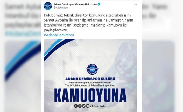 "Kulübümüz teknik direktör konusunda tecrübeli isim Samet Aybaba ile prensip anlaşmasına varmıştır. Yarın İstanbul’da resmi sözleşme imzalanıp kamuoyu ile paylaşılacaktır."