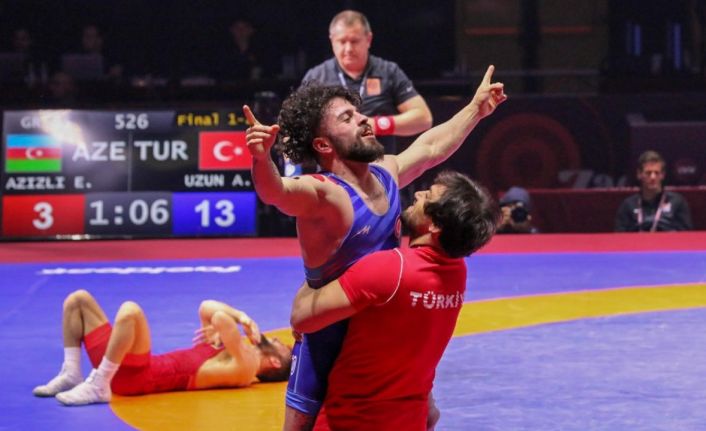 Final müsabakasında da Azerbaycanlı Eldaniz Azizli ile karşılan Adem Burak Uzun, minderden 11-3 galip ayrılarak altın madalyanın sahibi oldu.