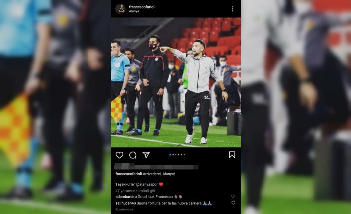 Aytemiz Alanyaspor’un Fatih Karagümrük ile adı anılan yardımcı antrenörü Francesco Farioli sosyal medya hesabı üzerinden turuncu-yeşilli takıma veda etti.