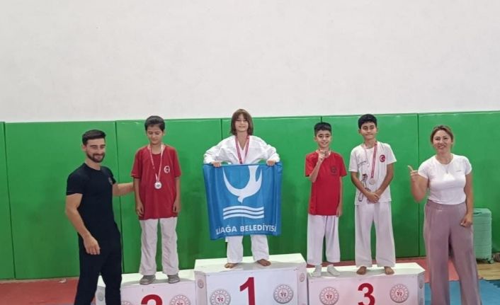 Aliağa Belediyesi Spor Okulları’nda eğitim gören karate öğrencileri, 30-31 Ağustos tarihlerinde Kemalpaşa’da düzenlenen "30 Ağustos Zafer Bayramı İzmir İl Şampiyonası"nda büyük bir başarıya imza attı. Aliağa Belediyesi Demir Spor Kulübü adına şampiyonaya katılan 12 sporcudan 10’u derece elde ederek, Aliağa’ya 5’i altın, 4’ü gümüş ve 1’i bronz olmak üzere toplam 10 madalya kazandırdı.
