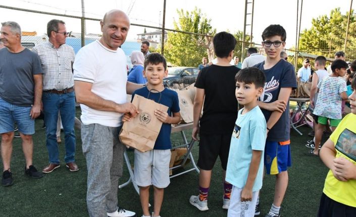 Yaz Spor Okuluna katılan öğrencilere malzemeleri, Altınova Belediyesi Halı Saha Spor Tesisleri düzenlenen törenle verildi.