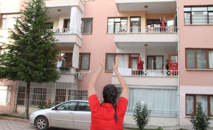 Amasya’da antrenör sokakta, vatandaşlar balkonda spor yaptı.