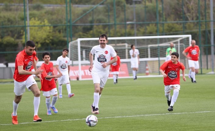 Ünlü futbolcuların ve Çevre, Şehircilik ve İklim Değişikliği Bakanı Murat Kurum’un afetzede çocuklarla birlikte forma giydiği maçta futbolun yıldızları ‘Yükselen Anadolu’ için bir araya geldi.