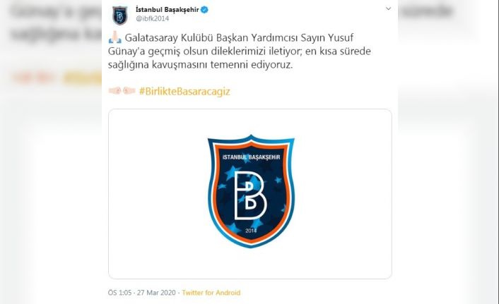 Medipol Başakşehir, koronavirüs testi pozitif çıkan Galatasaray Başkan Yardımcısı Yusuf Günay için geçmiş olsun mesajı yayımladı.