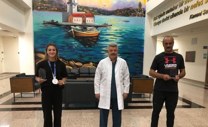 Tokyo Olimpiyatları’nda elde ettiği ikincilikle Türkiye’ye gümüş madalya getiren milli boksör Buse Naz Çakıroğlu, Kartal Doktor Lütfi Kırdar Şehir Hastanesi Başhekimi Prof. Dr. Recep Demirhan ve hastane yönetimi ile sağlık çalışanlarıyla bir araya geldi. Milli sporcu, burada Demirhan tarafından tebrik edildi.