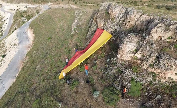 Batman’ın Gercüş ilçesinde Galatasaray taraftarları, ilçeye sığdıramadıkları 500 metrekarelik bayrağı tepeye astı.