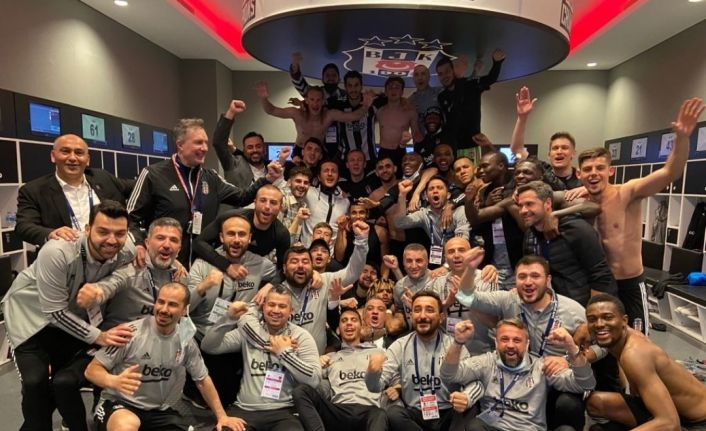 Süper Lig’in 39. haftasında Hatayspor’u konuk eden Beşiktaş, Akintola (k.k.), Larin (4), N’Koudou ve Rıdvan Yılmaz’ın golleriyle sahadan 7-0’lık galibiyetle ayrılırken şampiyonluk yolunda önemli bir virajı geride bıraktı. Beşiktaş, ligin kalan 3 haftasında 4 puan toplaması durumunda şampiyonluğunu ilan edecek. Hatayspor önünde bu sezon ligdeki en farklı galibiyete imza atan siyah-beyazlılarda futbolcular maçın ardından soyunma odasında galibiyet pozu verirken, Beşiktaş’ın resmi sosyal medya hesabından bu fotoğraf "Kimse heveslenmesin" notuyla paylaşıldı.Beşiktaş: "Kimse heveslenmesin"