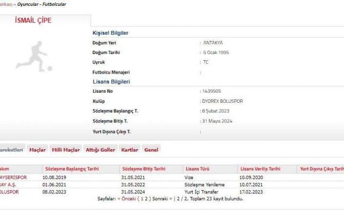 Boluspor, İsmail Çipe’yi TFF’ye bildirdi