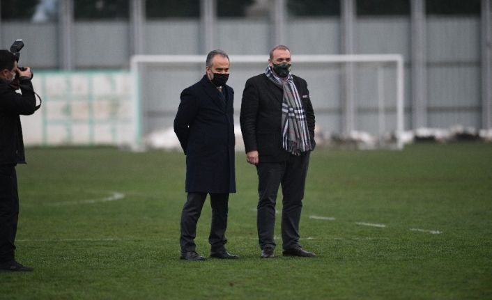 Bursa Büyükşehir Belediye Başkanı Alinur Aktaş, Bursaspor’un bugünkü antrenmanını ziyaret etti. Bursaspor Başkanı Erkan Kamat ve yönetim kurulu üyelerinin de yer aldığı idmanı takip eden Alinur Aktaş, Büyükşehir Belediyesi tarafından, antrenman sahalarına sağlanan destekleri yerinde kontrol etti. Antrenman sonunda futbolculara tatlı ikram eden Başkan Aktaş, şunları söyledi: