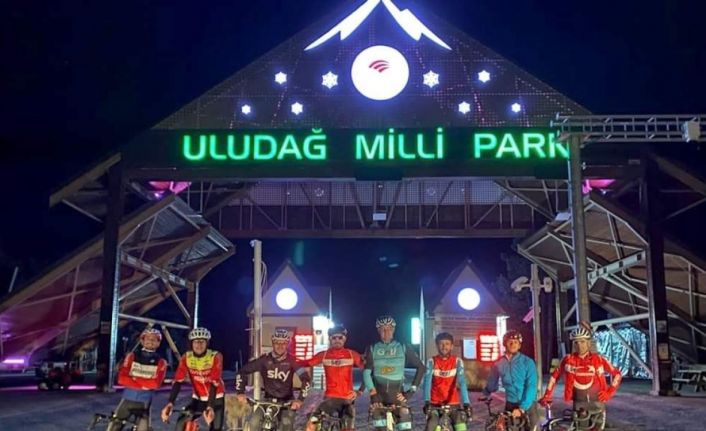 Bursalı bisiklet tutkunları iftardan sonra Türkiye’nin en önemli kış ve doğa turizmi bölgesi olan Uludağ’a pedal çevirdi.
