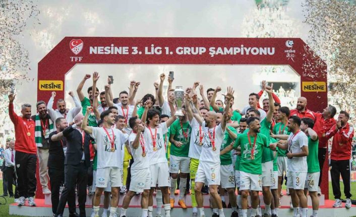 TFF 3. Lig 1. Grup’ta 2 hafta kala oynadığı Artvin Hopaspor maçında şampiyonluğu garantileyen Bursaspor, 4-1 mağlup ettiği Bornova 1877 maçından sonra düzenlenen törenler şampiyonluk kupasına kavuştu. Törende futbolcular, Atatürk Kompleksi Matlı Stadı’nda kurulan platforma tek tek çağırıldı. Daha sonra Türkiye Futbol Federasyonu Başkanı İbrahim Hacıosmanoğlu, kupayı Furkan Emre Ünver ve Ahmet İlhan Özek’e takdim etti.
